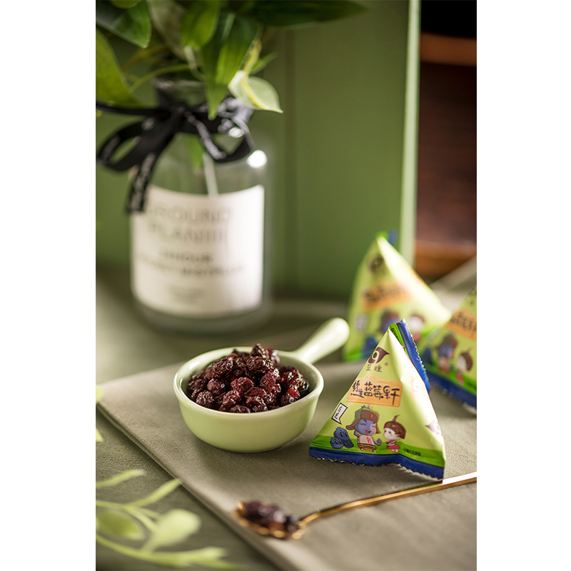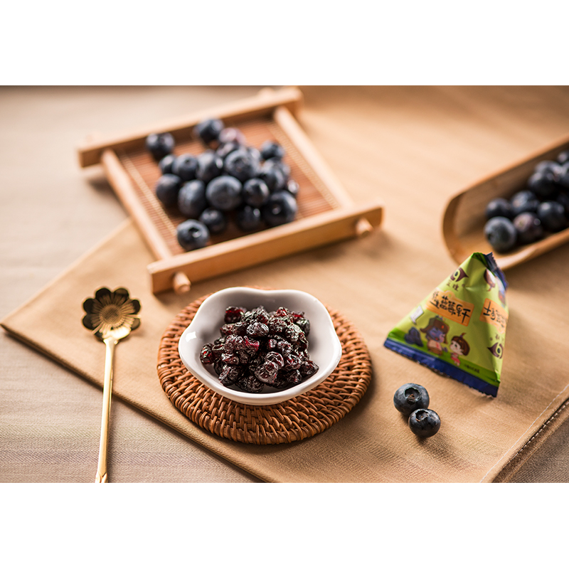 忠芝集團深耕藍莓產業(yè)十六年,旗下藍瞳藍莓果干作為復購率較高的產品,需要經過復雜的清洗、腌漬、菌群檢驗、口感穩(wěn)定、烘干、晾曬、高溫消毒等工藝步驟,孕婦、老人、小孩都可以放心食用。這一小袋248g包裝的產品,約有1200顆藍莓果,都是用獨立三角包包裝,方便攜帶。